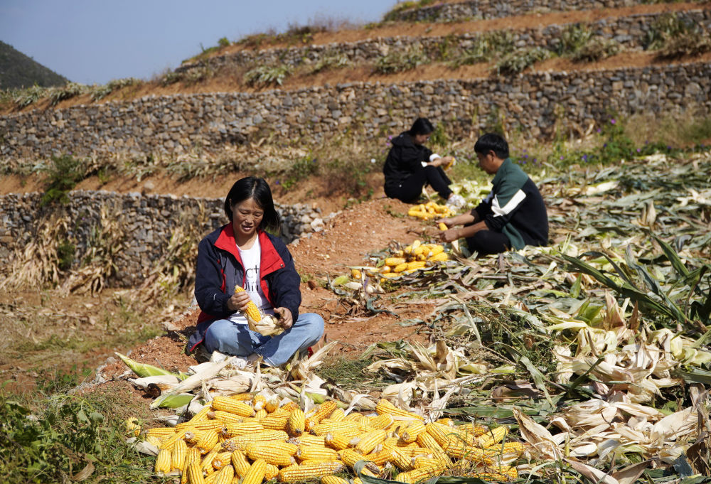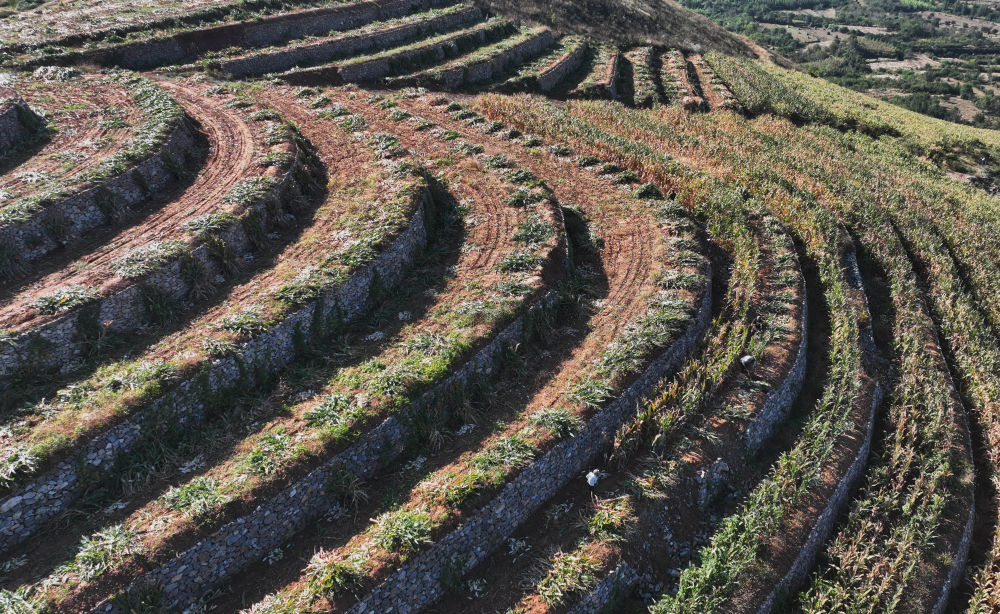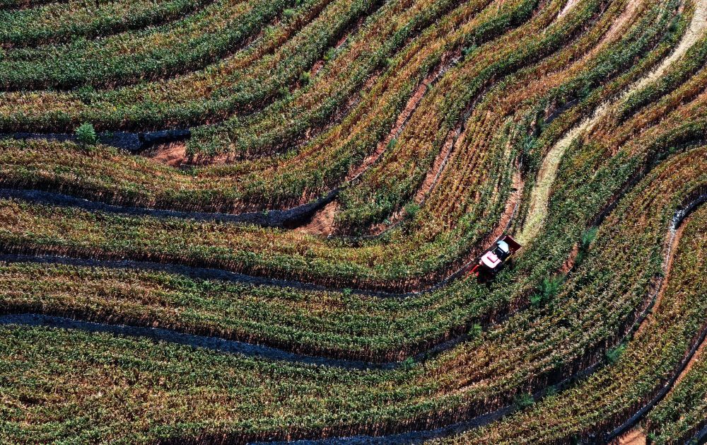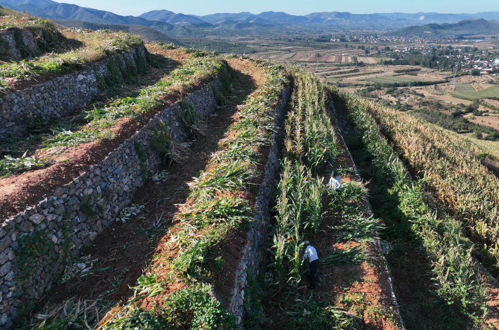 河北遵化:金秋梯田收获忙 金秋时节,在河北省遵化市刘备寨乡由丘陵坡地改造成的梯田中,农民抢抓农时收获玉米等秋粮。近年来,遵化市大力实施土地整治工程,将浅山丘陵坡地和荒草地改造成保水保肥的水平梯田,促进农业增效、农民增收。新华社记者 杨世尧
